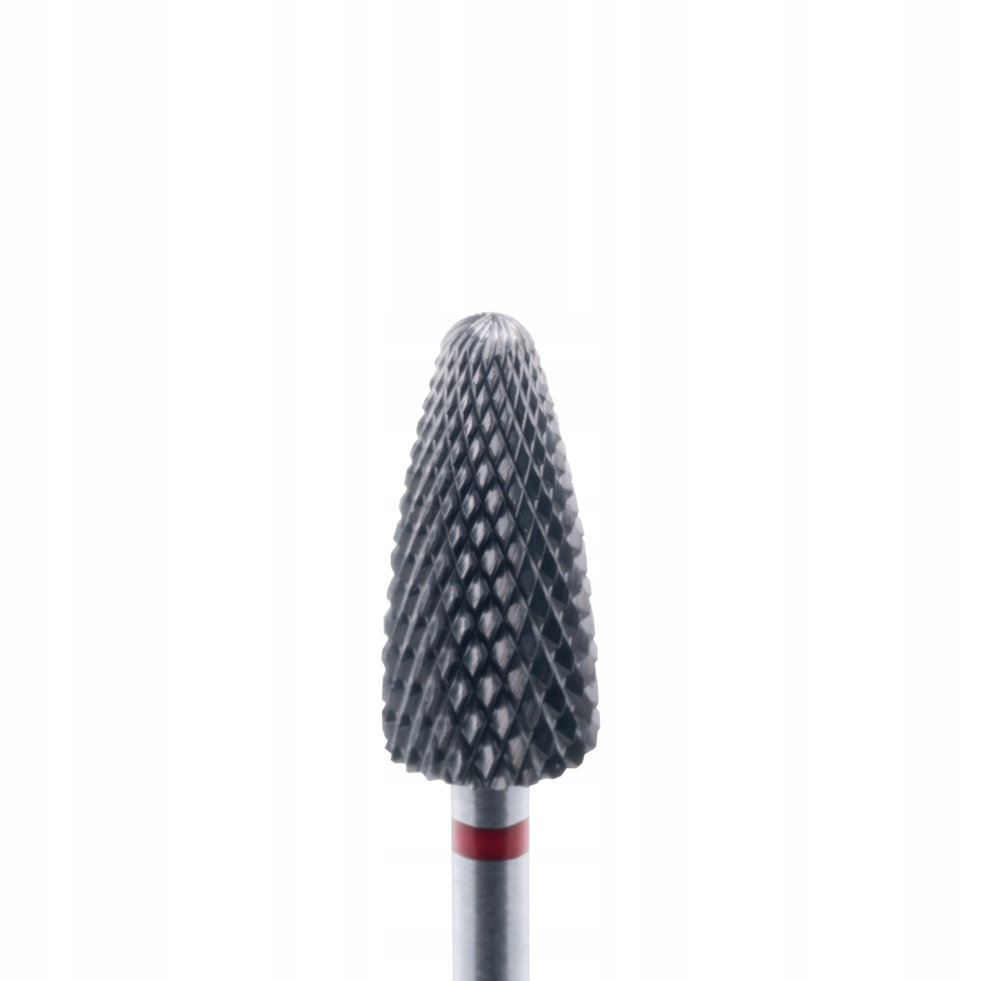 Delikatny frez z węglika spiekanego w kształcie stożka z drobnymi krzyżowymi nacięciami.