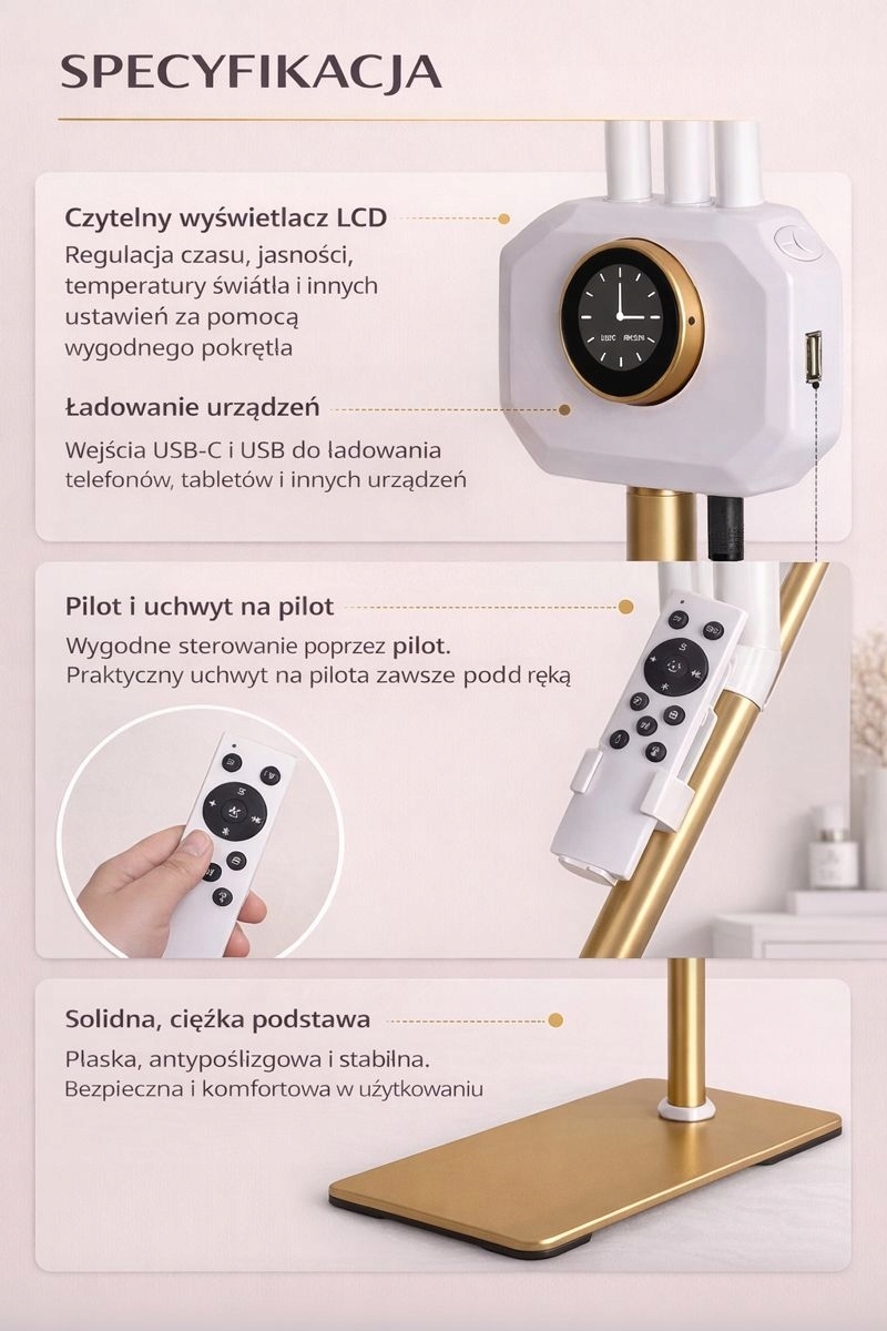 Profesjonalna lampa kosmetyczna stworzona z myślą o salonach beauty oraz wymagających użytkownikach. Zapewnia stabilne, jednolite światło, które nie męczy wzroku i pozwala na precyzyjną pracę nawet przez wiele godzin.