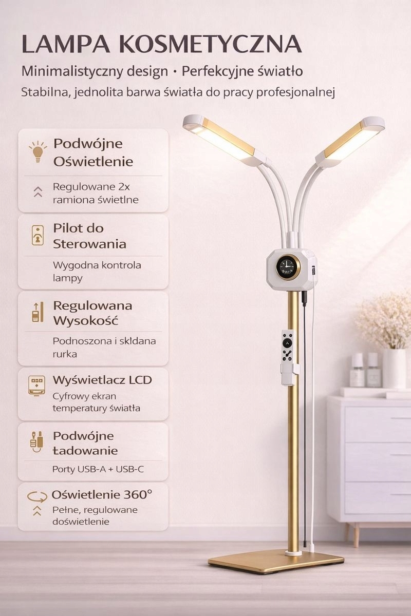 ✔️ Podwójne, elastyczne ramiona LED – precyzyjne doświetlenie z dwóch stron
