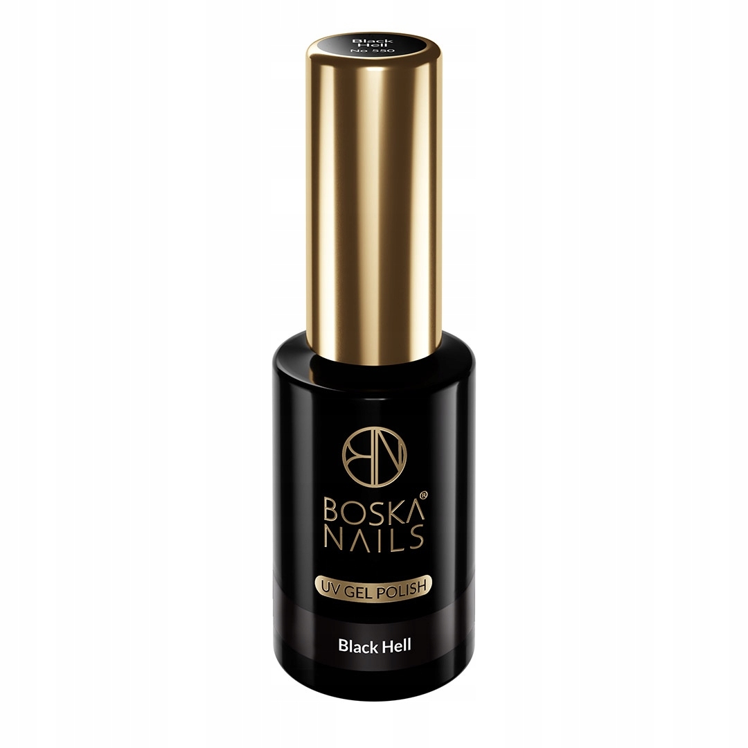 ❤️ Lakier Hybrydowy Boska Nails w kolorze czarnym Black Hell No 550 to idealny wybór dla miłośniczek eleganckich i klasycznych stylizacji paznokci