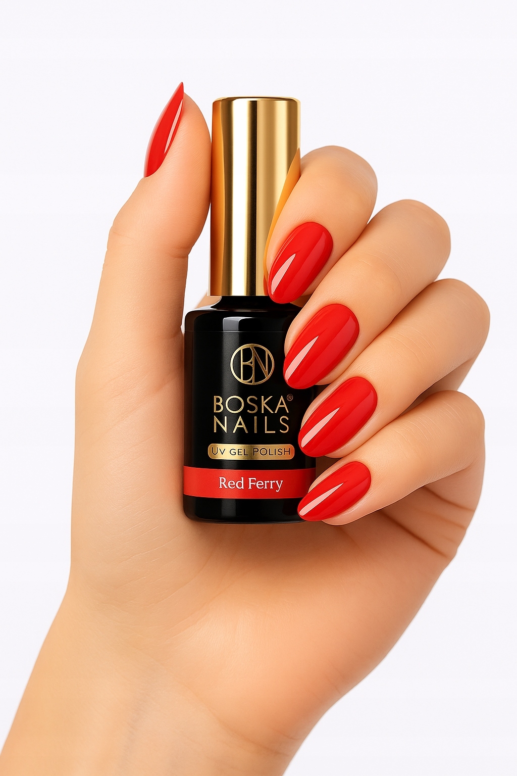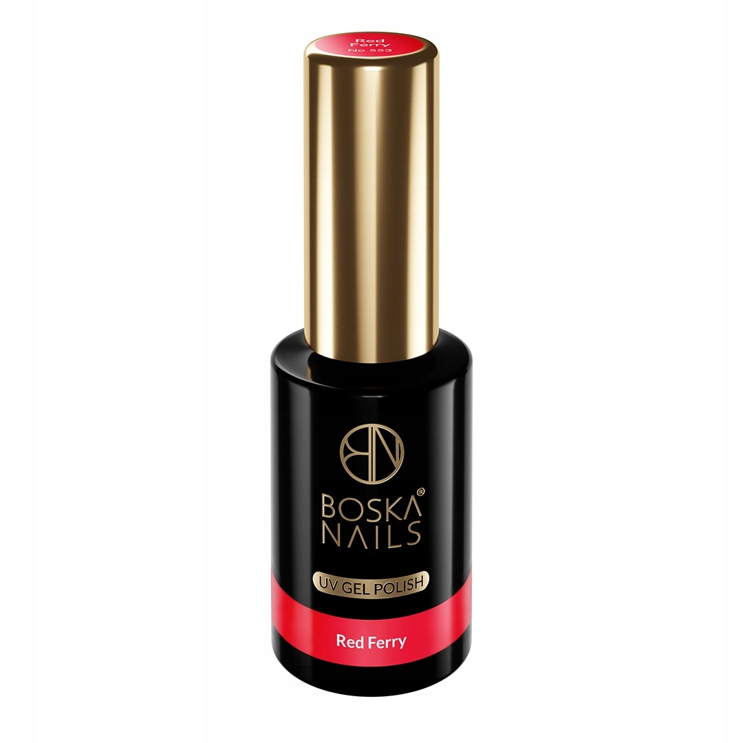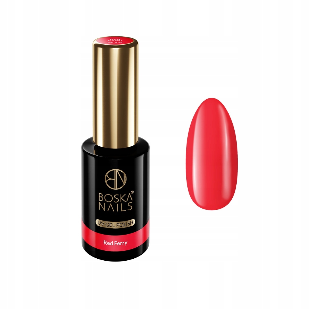 ❤️ Lakier Hybrydowy Boska Nails w kolorze wyrazistej czerwieni 553 Red Ferry to idealny wybór dla miłośniczek eleganckich i klasycznych stylizacji paznokci.