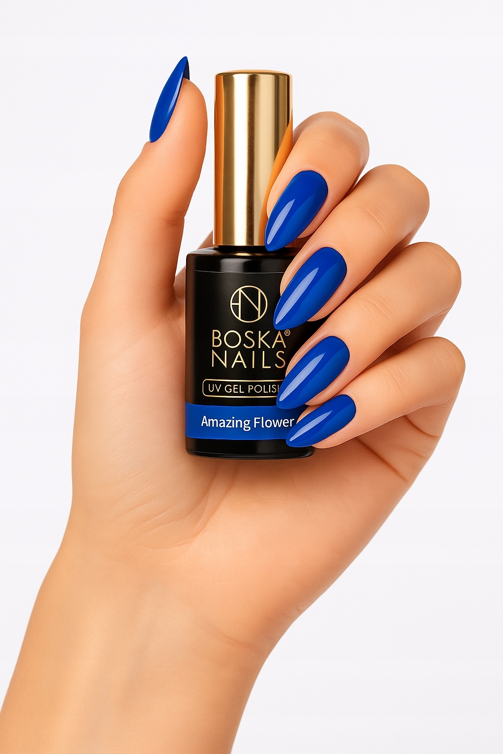❤️ Lakier Hybrydowy Boska Nails w kolorze chabrowym 558 Amazing Flower to idealny wybór dla miłośniczek eleganckich i klasycznych stylizacji paznokci