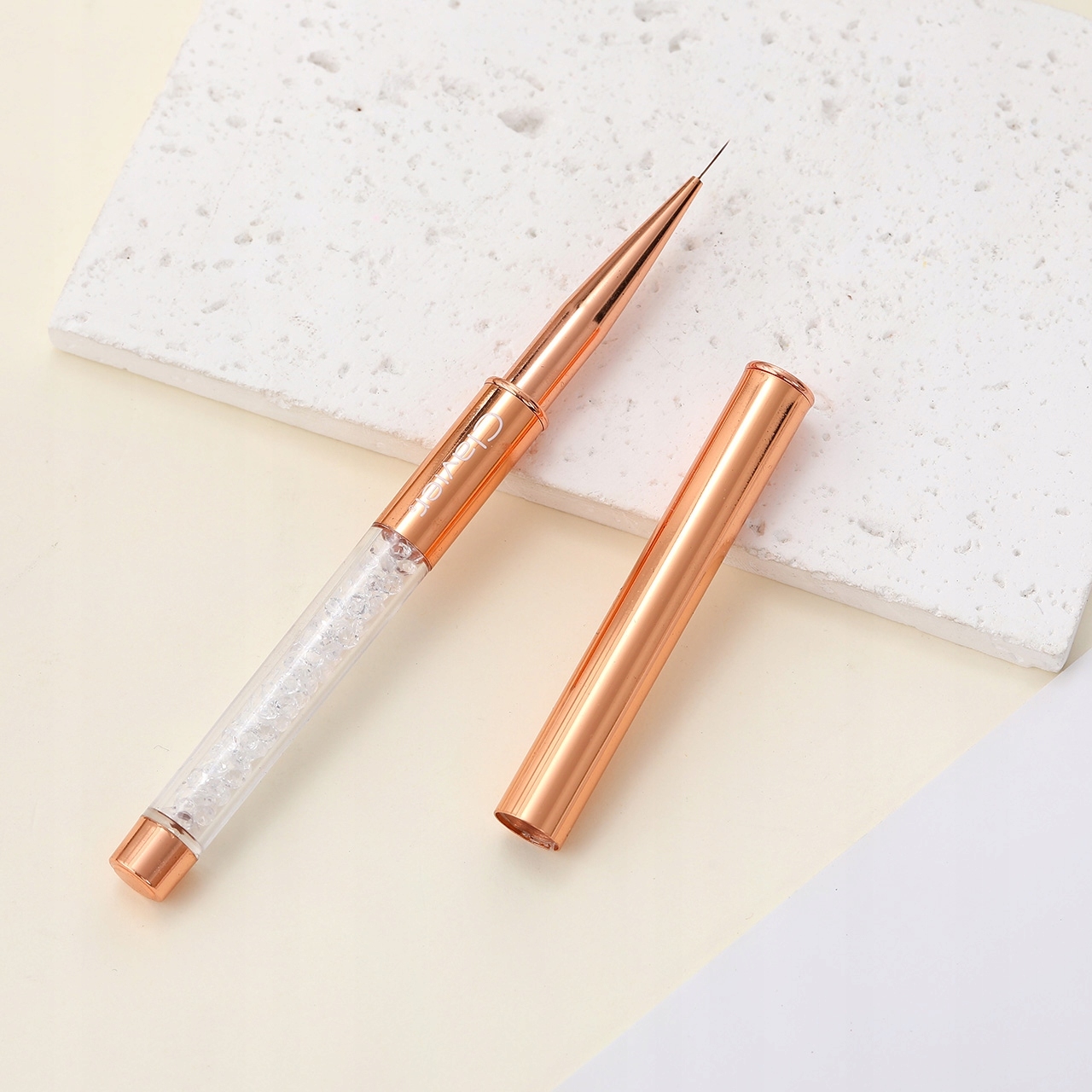Pędzelek do zdobień, to doskonale wyważony pędzel do nail artu, zaprojektowany z myślą o najwyższej precyzji i komforcie pracy. Jego wyjątkowy design nie tylko przyciąga uwagę, ale także sprawia, że praca staje się czystą przyjemnością. Dzięki doskonałemu wyważeniu leży idealnie w dłoni, umożliwiając bezproblemową i precyzyjną pracę.