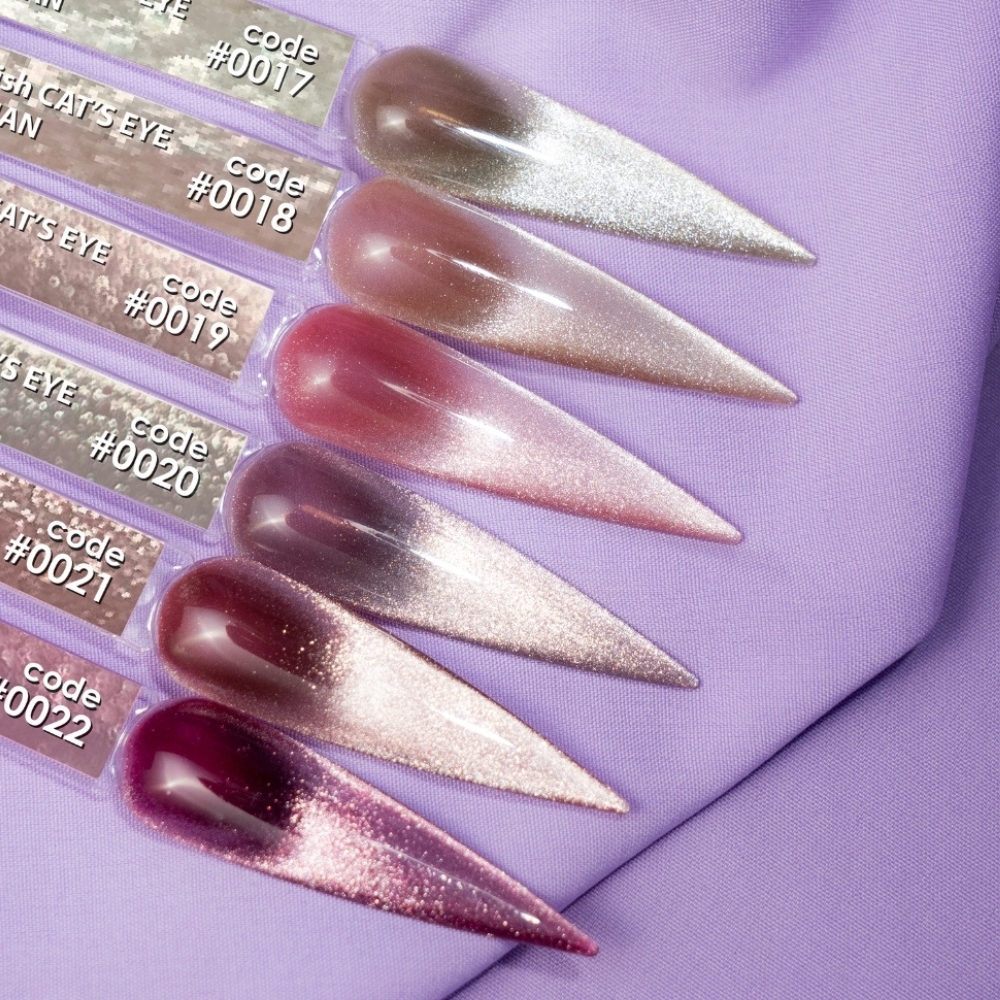 Lakiery z serii Bohemian Cat Eye zawierają miliony maleńkich metalicznych drobinek, które reagują na magnes, tworząc unikalny efekt kociego oka.