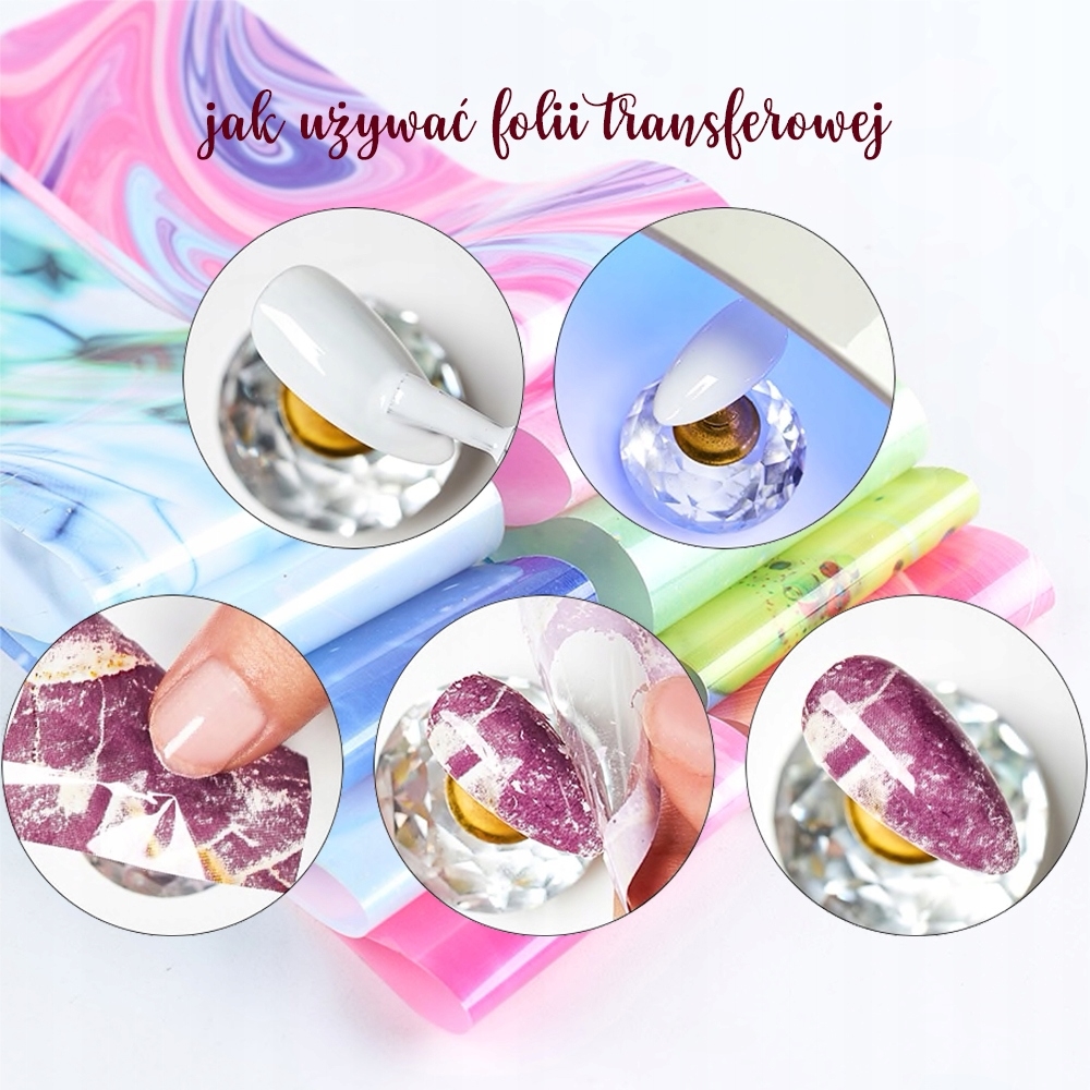 Do stosowania na lakierze hybrydowym bądź żelu. Naklejamy ją na warstwę dyspersyjną i pokrywamy nabłyszczaczem.