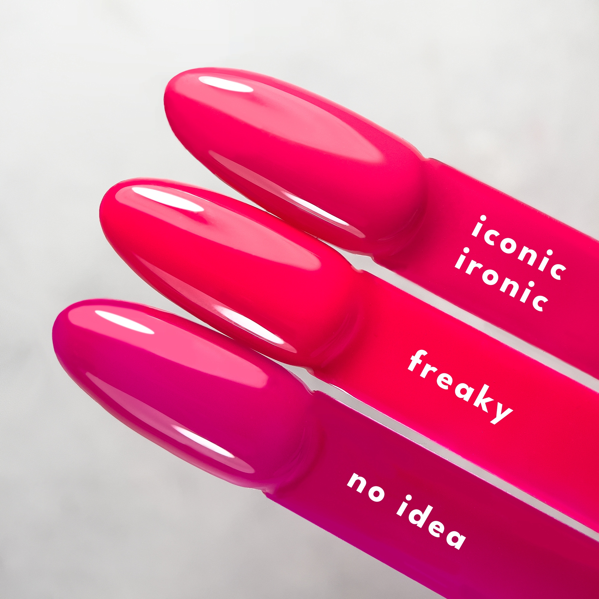 FREAKY to intensywny neonowy róż o zadziornym charakterze, który doskonale oddaje ducha wolności i oryginalności. Ten kolor to prawdziwa eksplozja energii, która sprawia, że każdy manicure staje się manifestem odwagi i kreatywności. Jest to odcień stworzony dla osób, które chcą być w centrum uwagi i nie boją się wyróżniać.