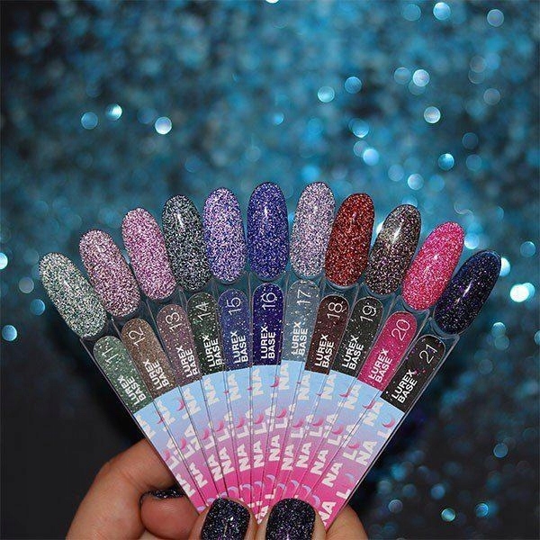 Lurex Base to odblaskowa baza kamuflażowa, która całkowicie zastąpi lakier hybrydowy. Po włączeniu lampy błyskowej zaczyna świecić i wygląda magicznie, ponieważ zawiera Brokat w swojej konsystencji.
