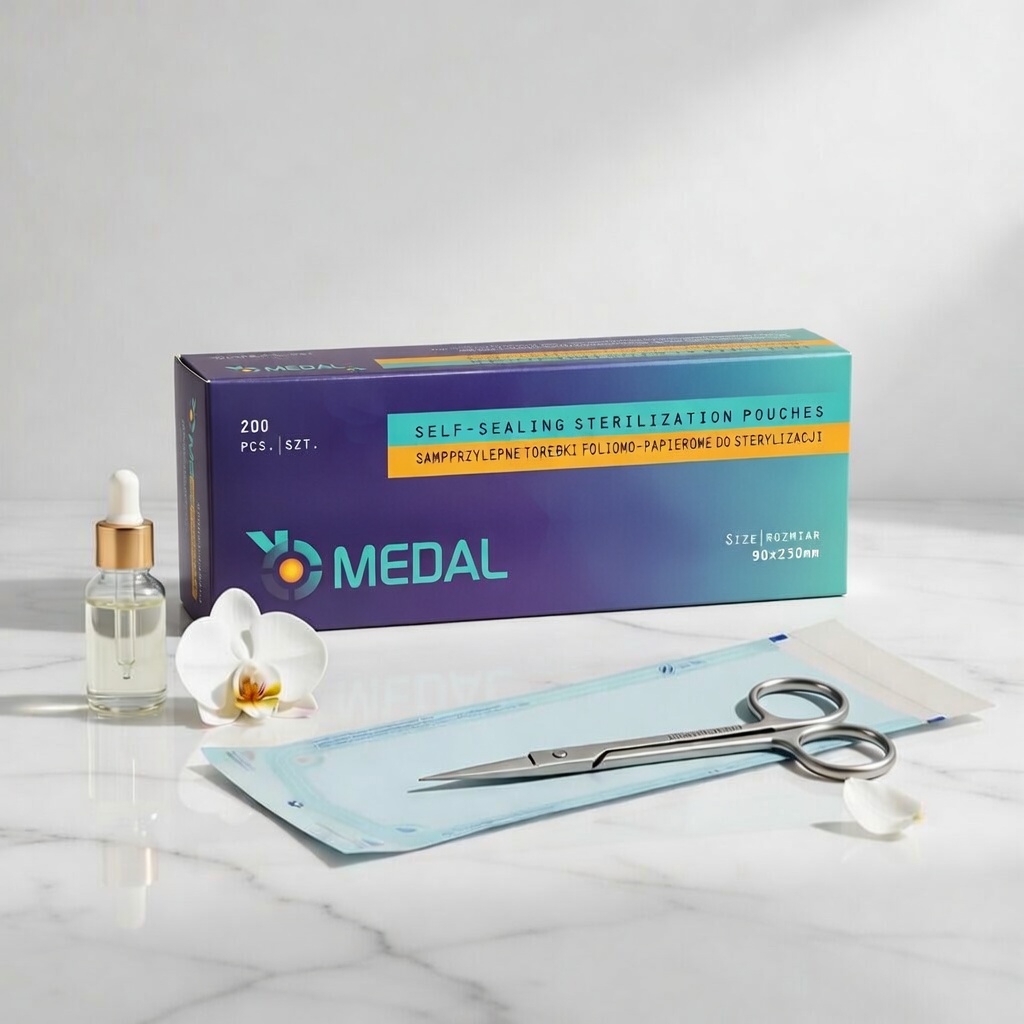 Profesjonalne torebki foliowo-papierowe do sterylizacji w autoklawie, przeznaczone do bezpiecznego pakietowania narzędzi przed procesem sterylizacji. Format 90×230 mm doskonale sprawdza się przy pakowaniu dłuższych narzędzi takich jak cążki, kleszczyki, pęsety czy dłutka podologiczne.