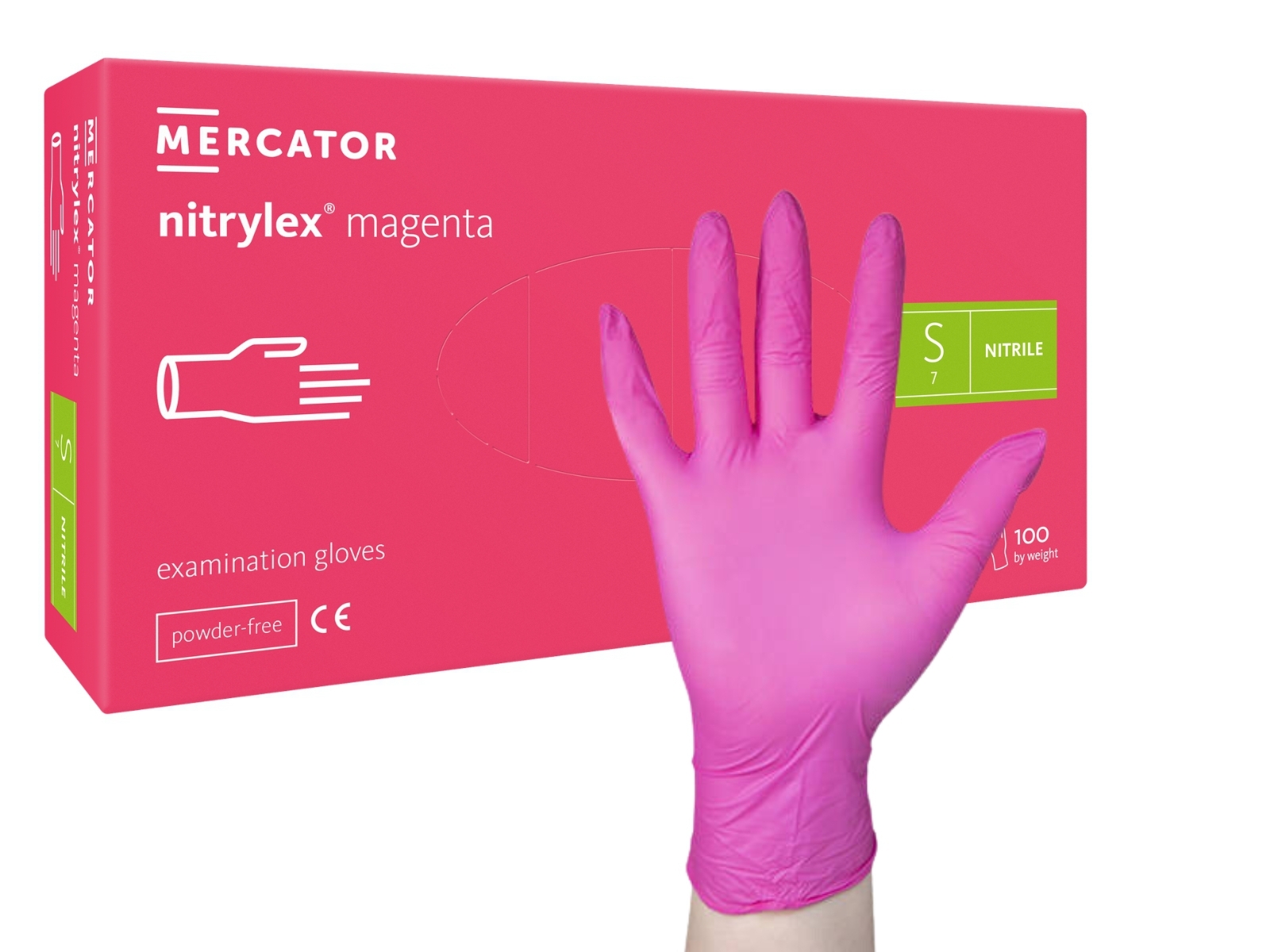 Profesjonalne rękawiczki nitrylowe nitrylex® w intensywnym kolorze magenta. Bezpudrowe, elastyczne i komfortowe – idealne do gabinetów beauty, podologii oraz pracy wymagającej precyzji i estetyki.