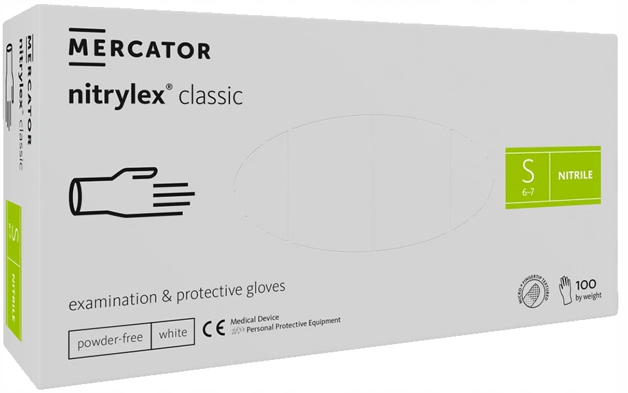 Rękawiczki nitrylowe NITRYLEX CLASSIC WHITE - biały kolor do szczególnej czystości Białe rękawiczki nitrylowe NITRYLEX CLASSIC WHITE przeznaczone są do działań medycznych i jednorazowego użytku w wielu innych branżach. Pasują na lewą i prawą rękę są oburęczne. Niejałowy charakter dedykowany do prac nie wymagających sterylnych warunków. Rękawiczki nitrylowe zabezpieczają skórę rąk przed działaniem nieczystości, substancji chemicznych i bakteriami. Polimeryzowane wnętrze i teksturowane końcówki palców podwyższają jakość pracy oraz gwarantują pewny chwyt śliskich przedmiotów. Dzięki hipoalergiczności rękawice nitrylowe mogą być wykorzystane przez osoby z alergią na lateks oraz istotnie ogranicza ryzyko wystąpienia alergii typu IV. Bezpudrowe rękawice niejałowe występują w kolorze białym i rozmiarach S, M, L, XL. Funkcjonalność rękawic nitrylowych opiera się na ich elastyczności.