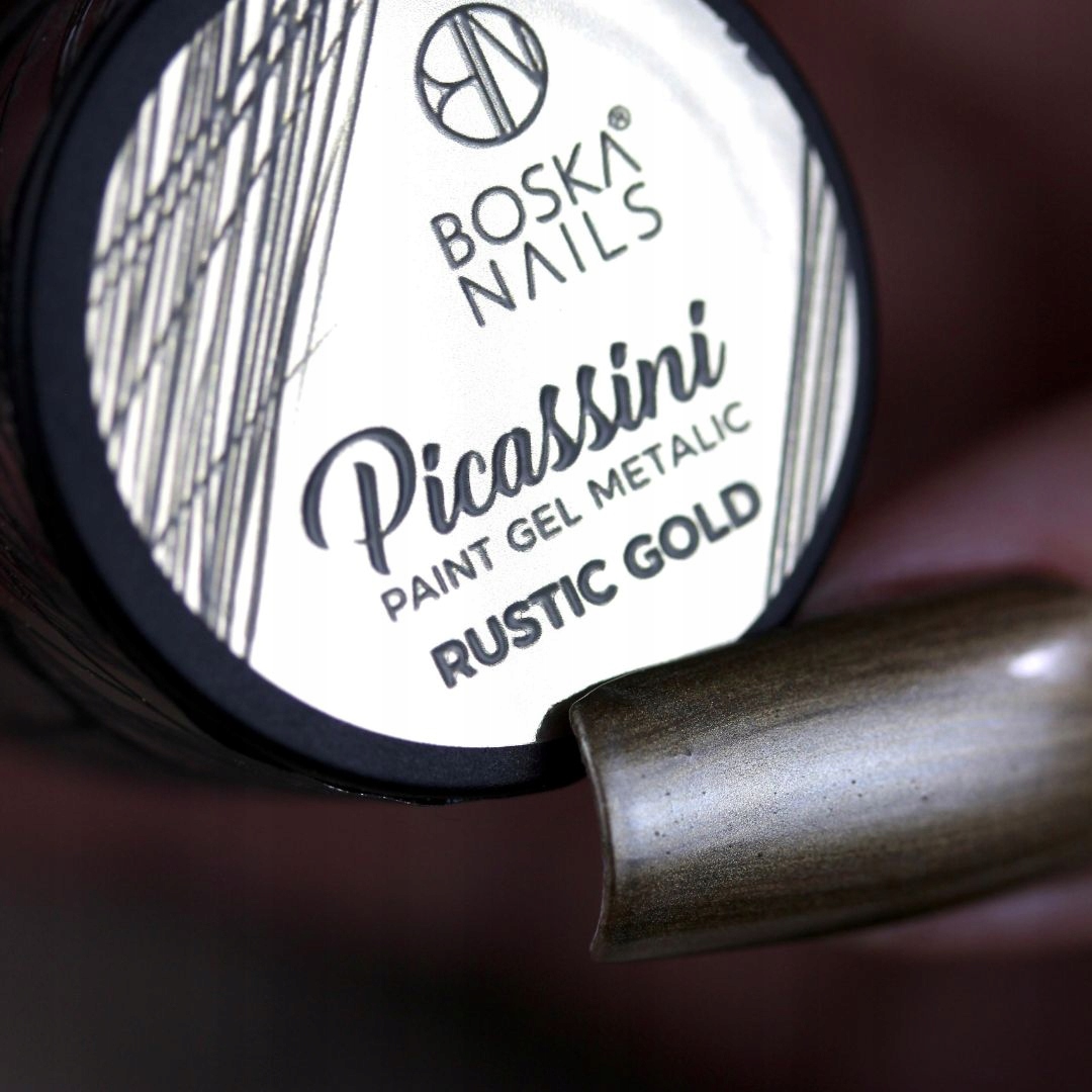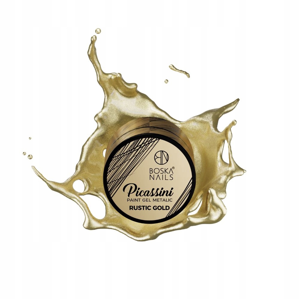 Głęboki złoty kolor Rustic Gold to propozycja od Boska Nails, która sprawdzi się na specjalne okazje i w stylizacjach ślubnych. Żel do zdobień z linii Picassini Metalic wyróżnia metaliczny złoty połysk, a także trwałość, pozwalająca dłużej cieszyć się stylizacją.