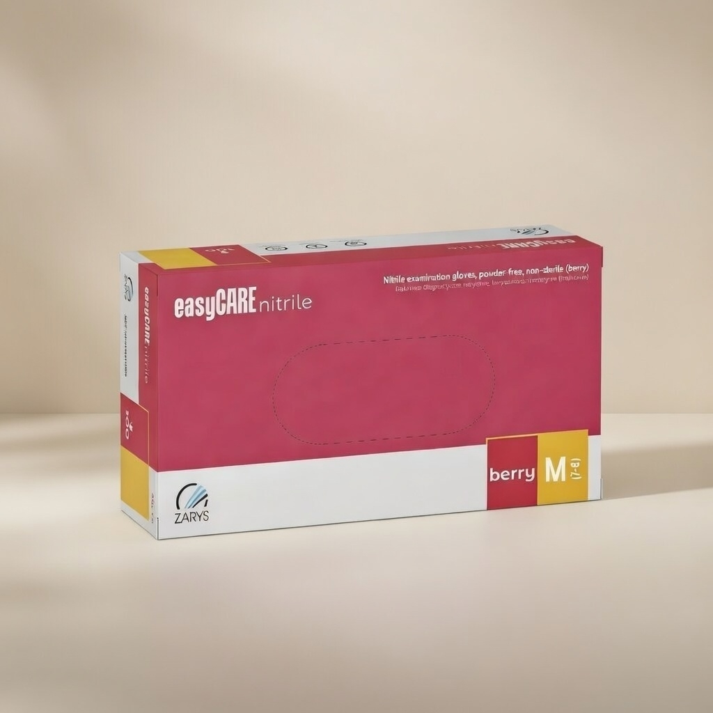 Profesjonalne rękawiczki nitrylowe easyCARE berry w intensywnym malinowym kolorze. Bezpudrowe, elastyczne i komfortowe – idealne do gabinetów beauty, podologii oraz pracy wymagającej precyzyjnego chwytu.