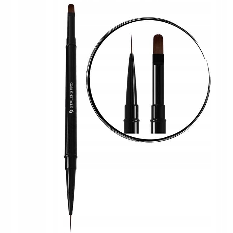 Staleks Pro Expert NBE-03/06 to profesjonalny, dwustronny pędzelek, który łączy w sobie liner 10 mm do precyzyjnych zdobień oraz pędzelek owalny 11 mm do pracy z żelem. Dzięki temu jedno narzędzie pozwala zarówno na tworzenie artystycznych detali, jak i równomierne nakładanie materiału.