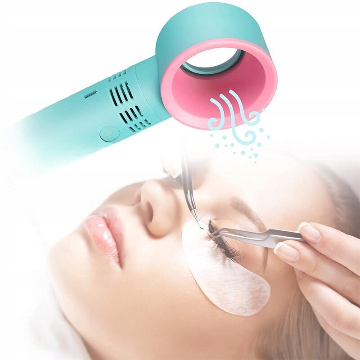 Podręczna suszarka do osuszania rzęs i usuwania nieprzyjemnych oparów kleju z okolicy oczu.