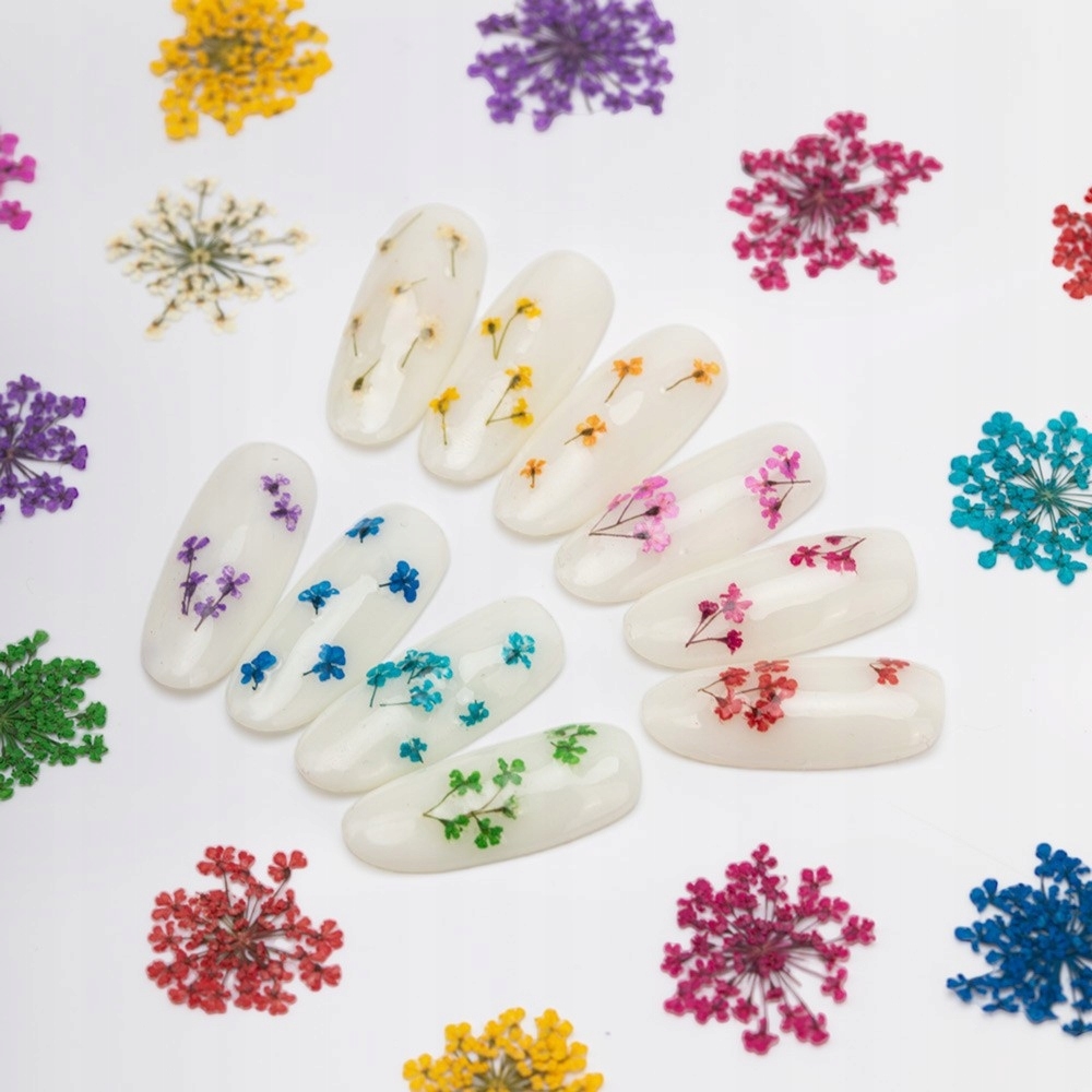 Te delikatne i kolorowe kwiatki można wykorzystać do stworzenia różnorodnych efektów i wzorów na paznokciach.