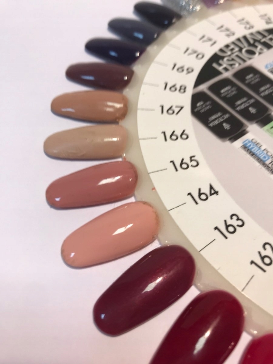 Gel Polish Color to lakiery hybrydowe, do stosowania w dwóch typach stylizacji : Easy Removal oraz Soak Off. Oferta posiada bogaty wybór: ponad 200 kolorów takie jak: klasyczne emalie, perły, brokaty, pastele, neony, pół-transparentne. Średnio – gęsta konsystencja przy dwóch warstwach zapewnia już idealne krycie oraz głębie koloru. Lakiery nie spływają i nie zalewają skórek. Płaski pędzelek ułatwia równomierną aplikację.