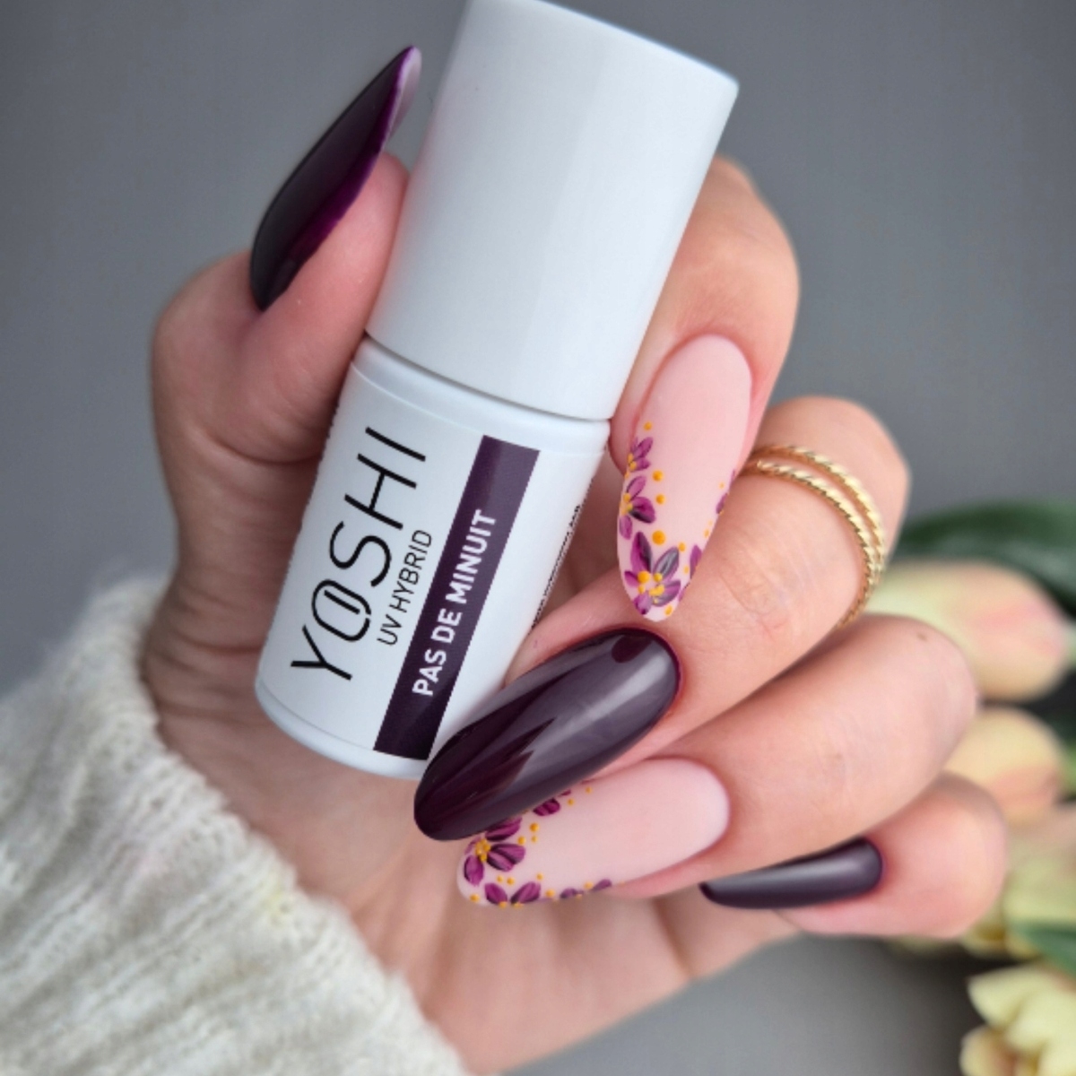 Yoshi Pas de Minuit to ciemny fiolet z nutą granatu, tak głęboki, że prawie czarny. Nie próbuje robić wrażenia. On wie, co znaczy zniknąć z klasą.