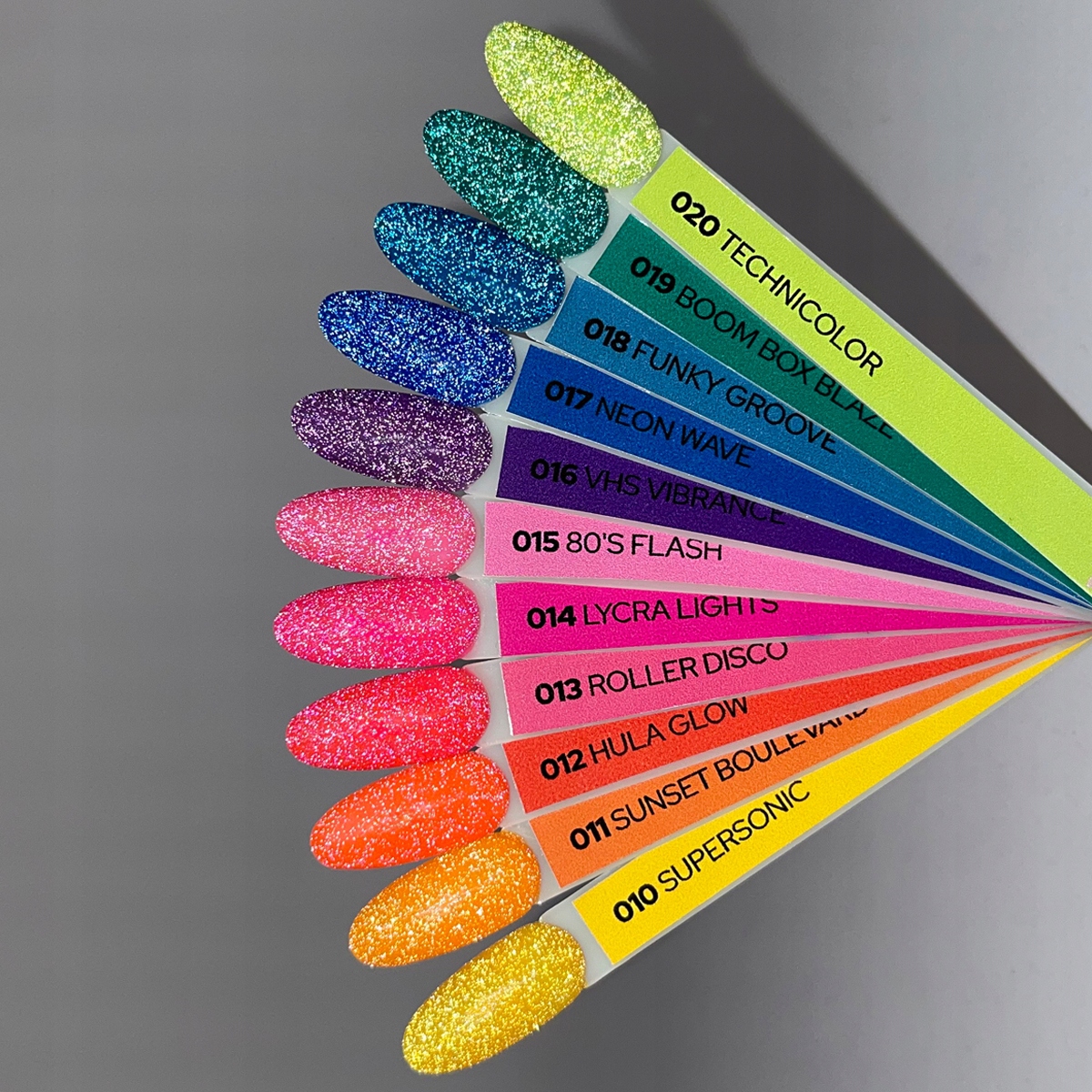 Zabierzemy was w podróż w czasie do magicznych lat 80., gdzie neonowe rozbłyski tańczyły w świetle dyskotekowej kuli. Każdy kolor tej kolekcji jest jak fragment zapomnianej płyty winylowej, który powraca do życia w pełnej krasie. A dzięki efektowi FLASH wasze paznokcie odbiją refleksy dyskotekowych świateł na zatłoczonym parkiecie!
