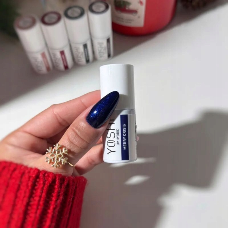 „Merry Crisis” to głęboki granat z subtelnym metalicznym refleksem — elegancki jak Twoje spojrzenie, kiedy zachowujesz spokój, choć światełka znowu się splątały, barszcz wykipiał, a kolejka po karpia ciągnie się jak północny ekspres. Lśniący, głęboki i podejrzanie spokojny — jak cisza przed kolejną grudniową katastrofą. To kolor dla tych, którzy wiedzą, że święta nigdy nie są idealne, ale skoro kryzys ma nadejść… niech przynajmniej dobrze wygląda.
